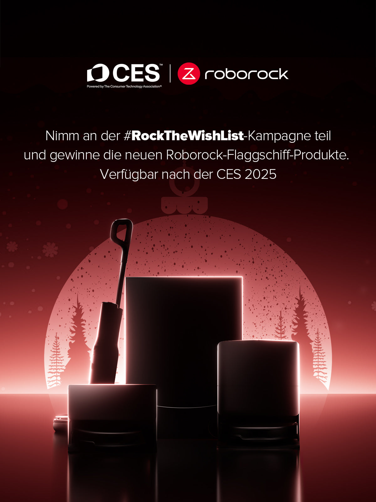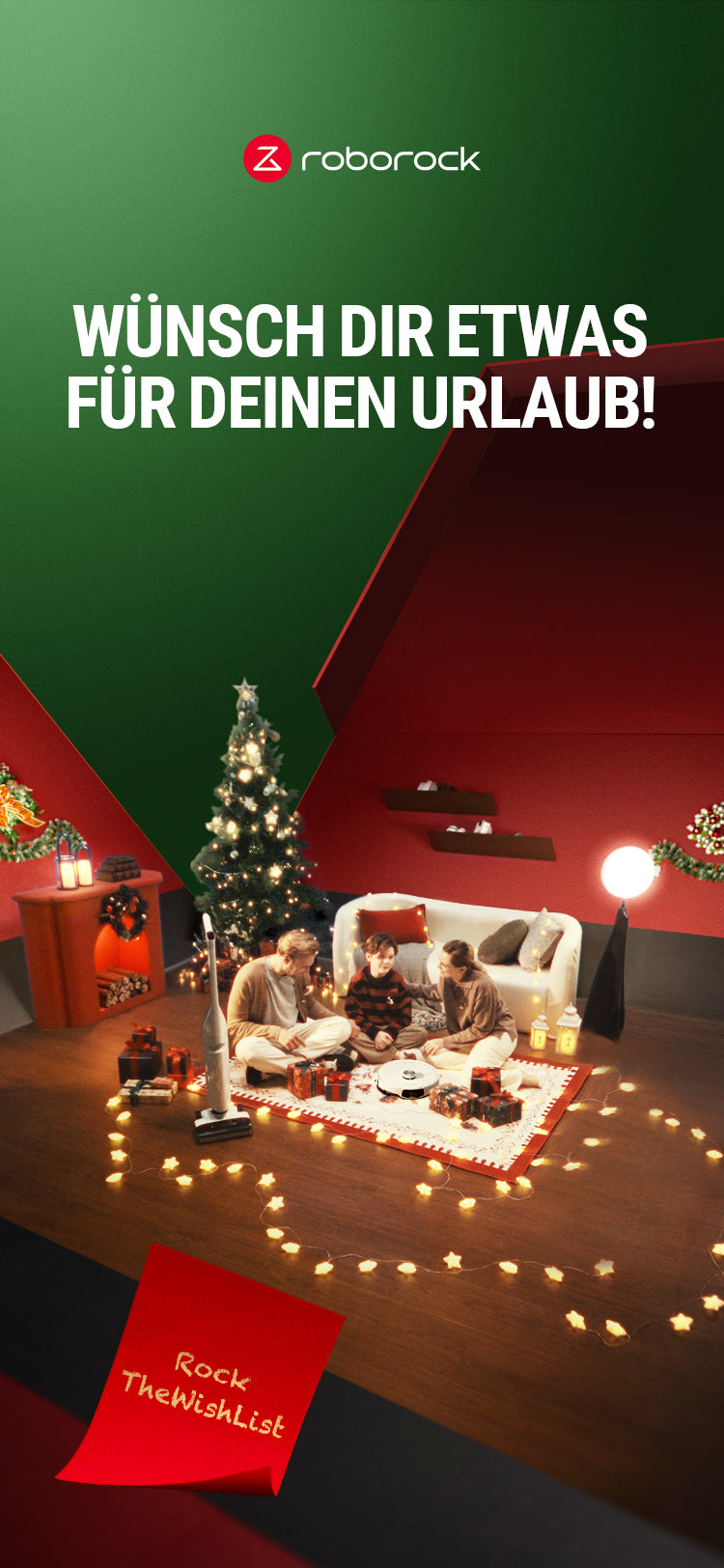 Teile deine kreativste und lustigste Wunschliste für die Feiertage auf unserer Kampagnenseite – egal ob als Video oder Bild. Wir stellen die spannendsten Einsendungen ins Spotlight und alle veröffentlichten Beiträge haben die Chance, ein brandneues Roborock-Flaggschiff-Produkt zu gewinnen, das nächstes Jahr auf den Markt kommt! Worauf wartest du? Mach jetzt mit, und lass uns gemeinsam die Feiertage rocken!🎁✨-