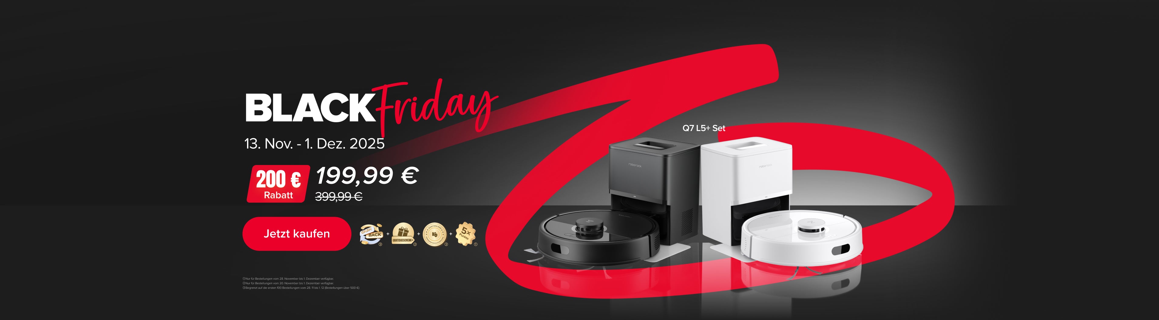 Diese Cashback-Aktion zum Black-Friday wird von Roborock (im Folgenden als „Veranstalter” bezeichnet) organisiert und durchgeführt, um unseren Kunden für ihre Unterstützung zu danken.Diese Aktion findet ausschließlich an den folgenden zwei angegebenen Tagen statt, wobei jeder Tag als eigenständige Veranstaltung gilt: