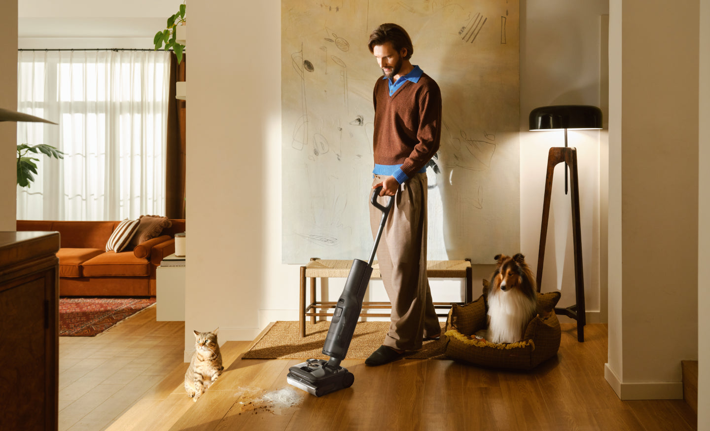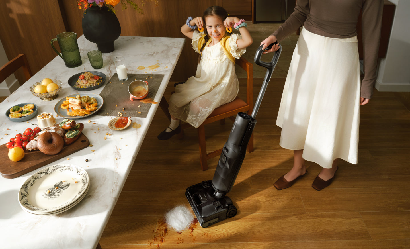 Beim Reinigen erkennt das System automatisch den Verschmutzungsgrad und passt Saugleistung und Wasserdurchfluss entsprechend an*. Es reinigt hartnäckige Flecken gründlich und beseitigt oberflächlichere Verschmutzungen im Nu – so sparst du dir Zeit, Mühe und mehrere Durchgänge.