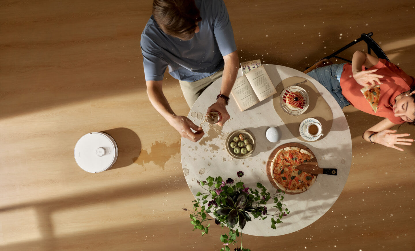 Mit einem 2,5-mal höheren Anpressdruck beim Wischen¹ beseitigt der Roborock hartnäckige Verschmutzungen mühelos von allen möglichen Hartböden. Wie ein Mensch stürzt er sich gezielt auf schwierige Flecken, um ein gründliches Reinigungsergebnis zu erzielen. Er eignet sich ideal für nassen Schmutz⁵ wie Ketchup, Kaffee und andere Flüssigkeiten oder matschige Pfotenabdrücke, sorgt für strahlend saubere Fußböden und erspart dir mühevolle Schrubberei.