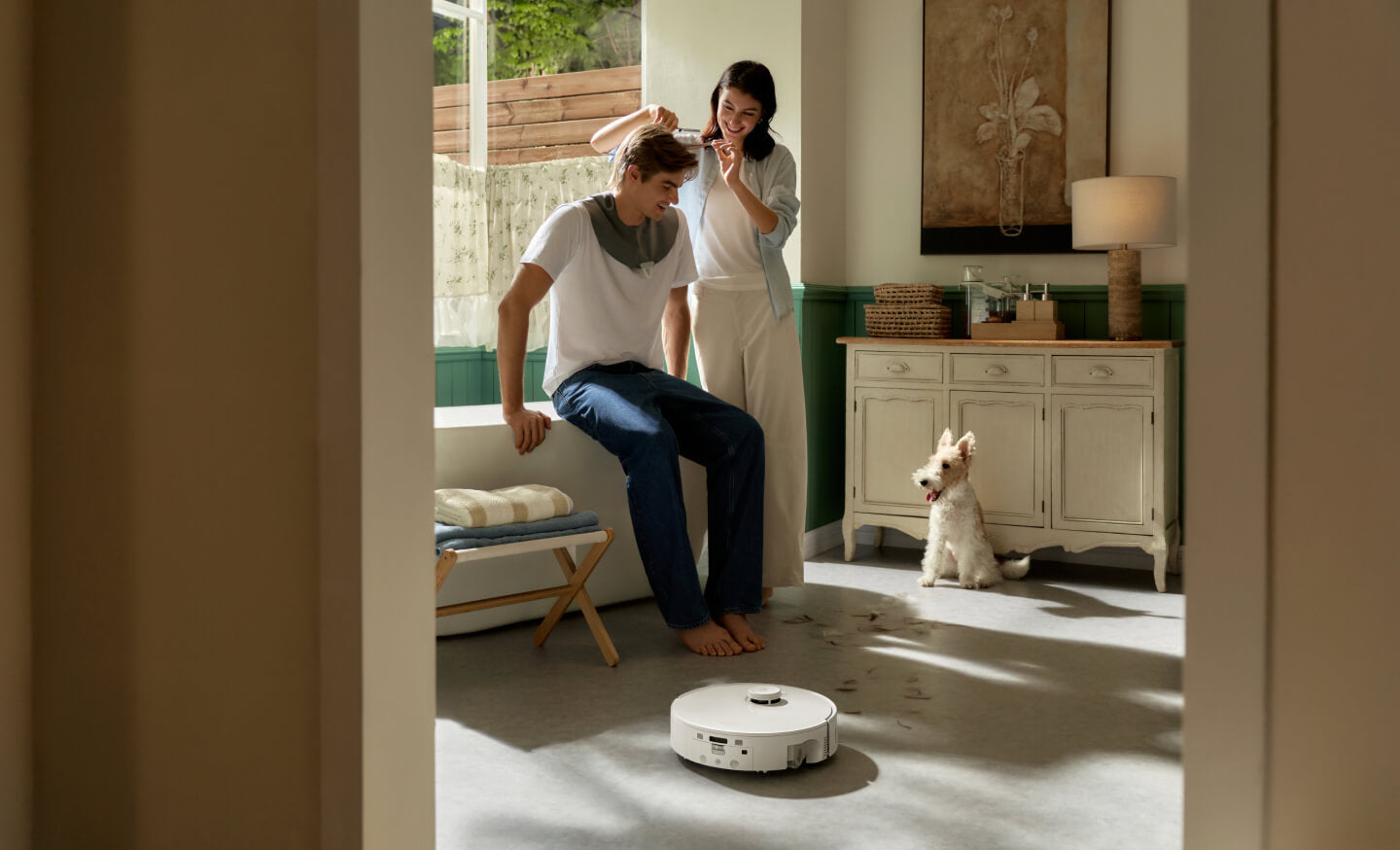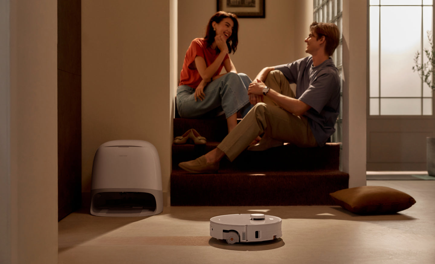 Kein Aufräumen vor der Reinigung nötig. Der Roboter ist mit strukturiertem Licht und einer RGB-Kamera ausgestattet und erkennt und vermeidet mehr als 200 Arten von üblichen Hindernissen – von verhedderten Kabeln bis hin zu Überraschungen deiner Haustiere – bei Tag und Nacht.