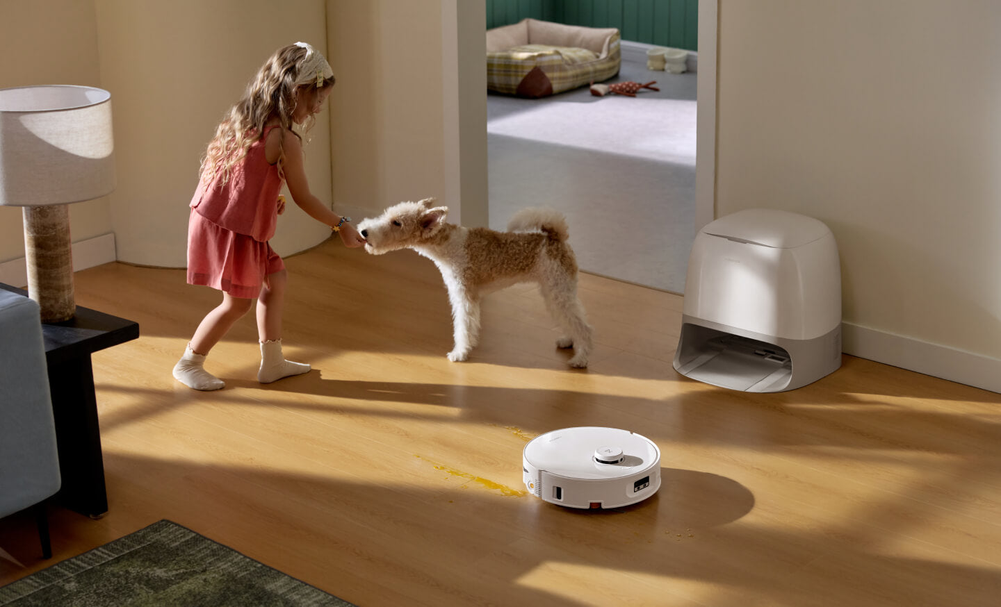 Wenn sich der Roboter Kitten oder Welpen nähert, schaltet er sofort seine Hauptbürste aus und fährt zur Seite, damit deine Haustiere keine Angst bekommen.