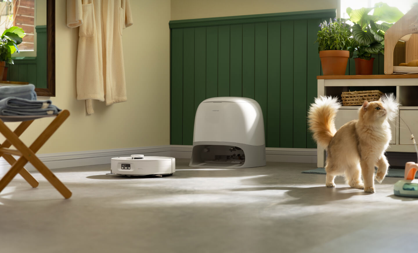 Der Roboter kann automatisch nach deinen Haustieren suchen und findet sie auch, wenn sie sich versteckt haben. So kannst du den Aufenthaltsort und Status deiner Tiere checken, wenn du nicht zuhause bist.