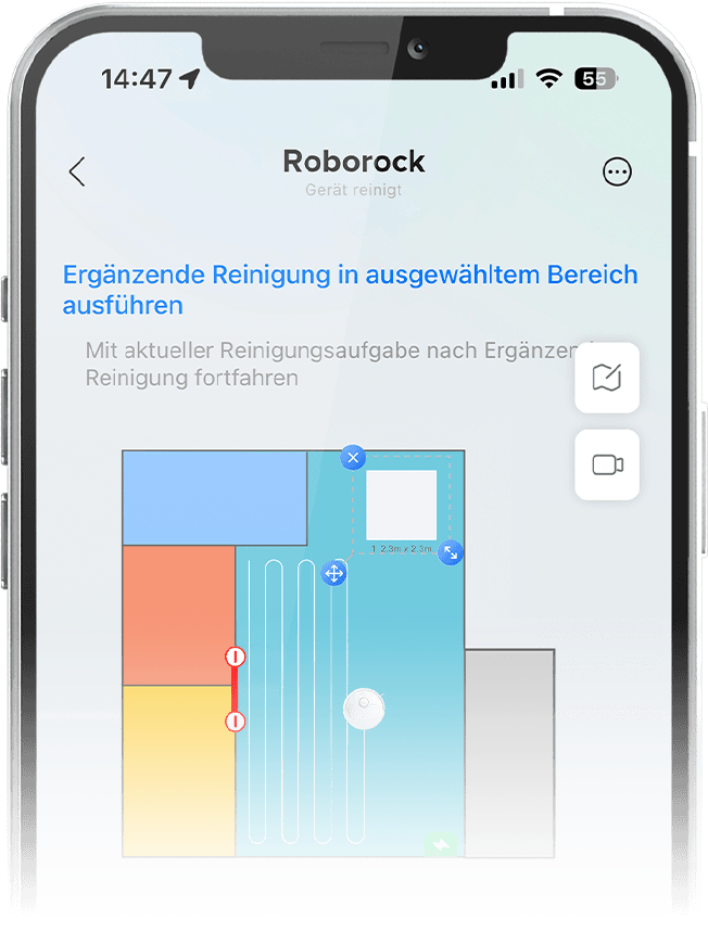 14. Basierend auf internen Roborock-Tests im Vergleich zum Modus „Reinigen & Kartieren“. Die tatsächlichen Ergebnisse können je nach Umgebungsbedingungen variieren.