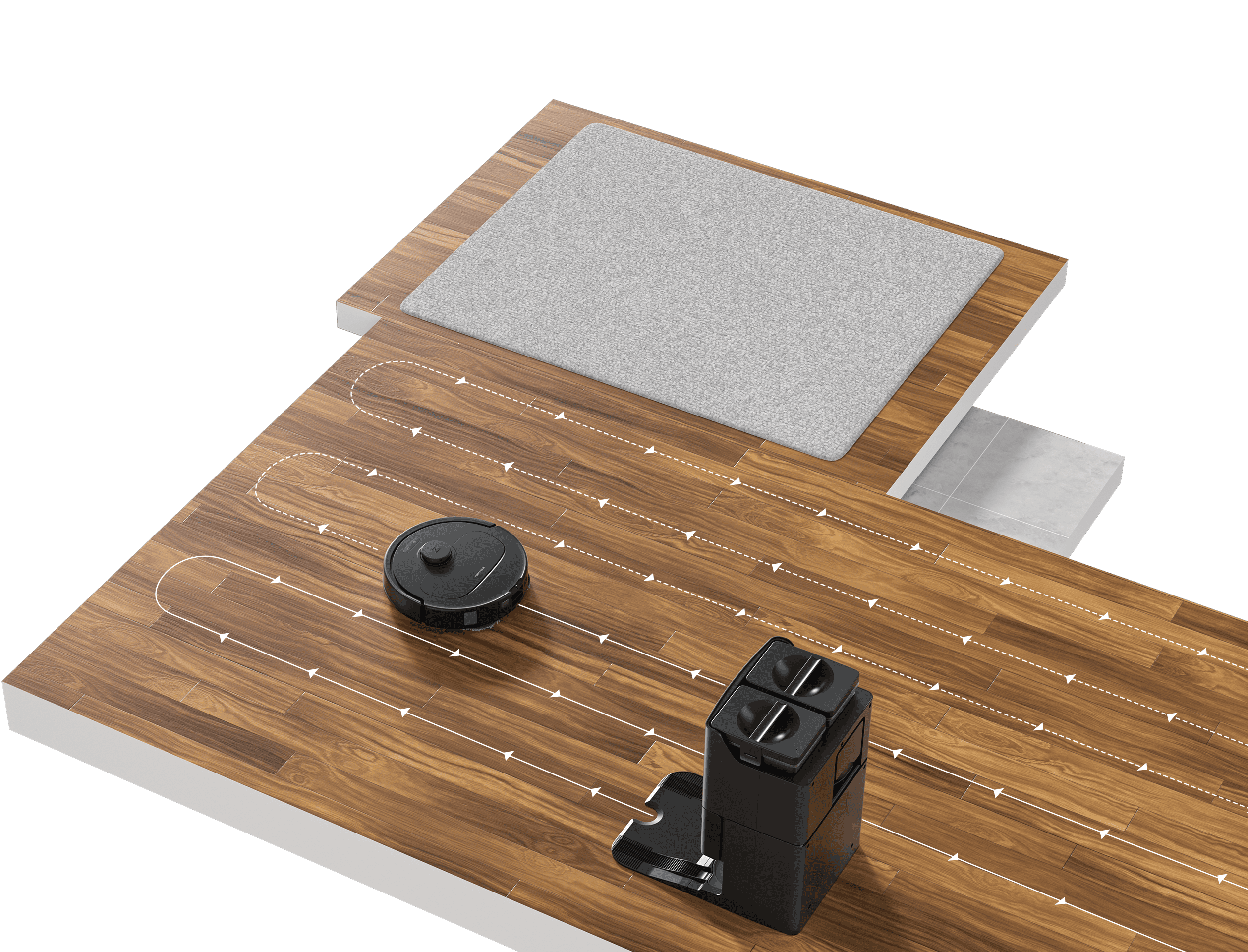 5. Basierend auf internen Roborock-Tests mit einem vollen Reinwassertank in der Dockingstation. Der Wischmodus ist auf Standard eingestellt. Die tatsächlichen Ergebnisse können je nach Umgebungsbedingungen variieren.