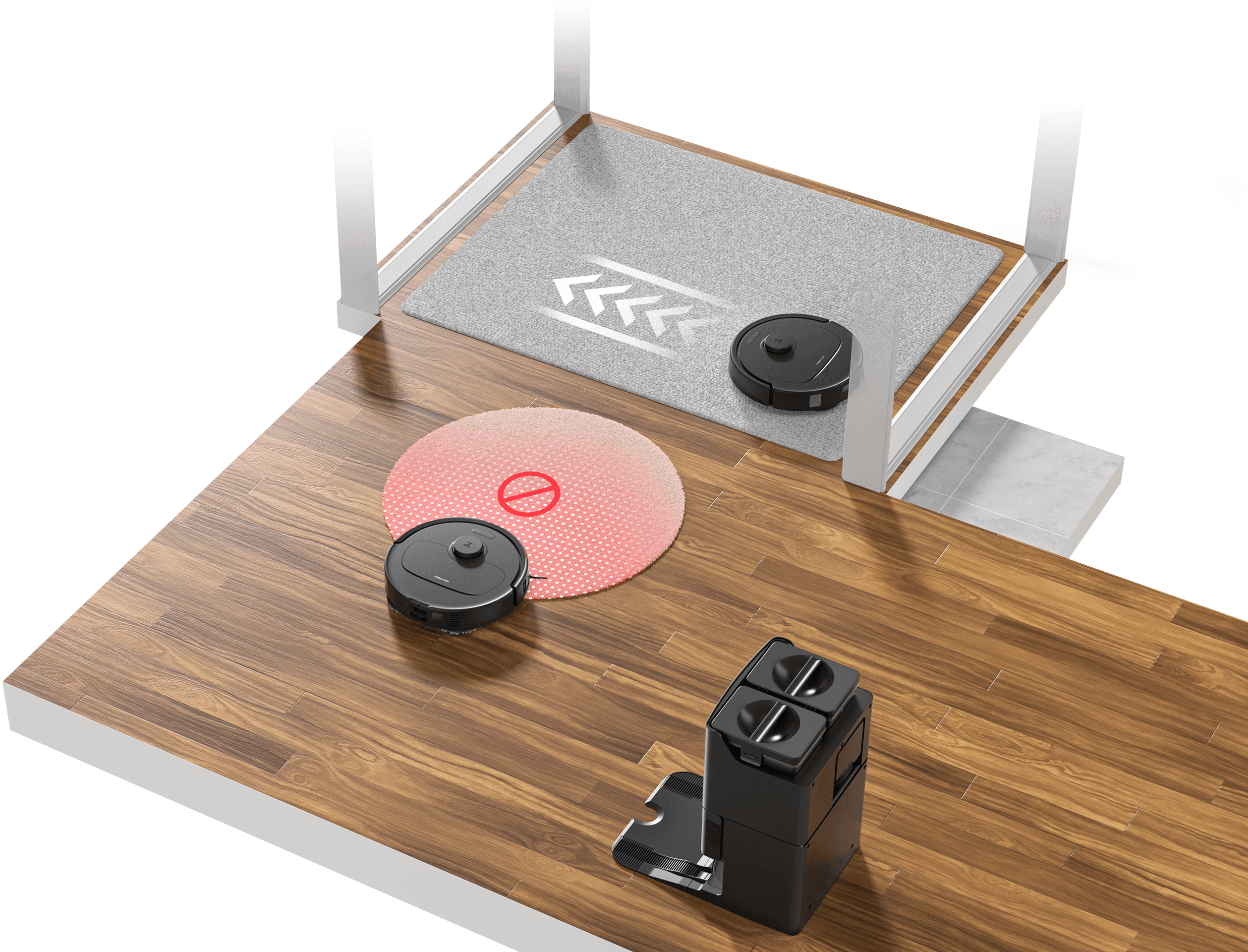 9. Basierend auf internen Roborock-Tests können die Wischmodule bis zu 10 mm angehoben werden.