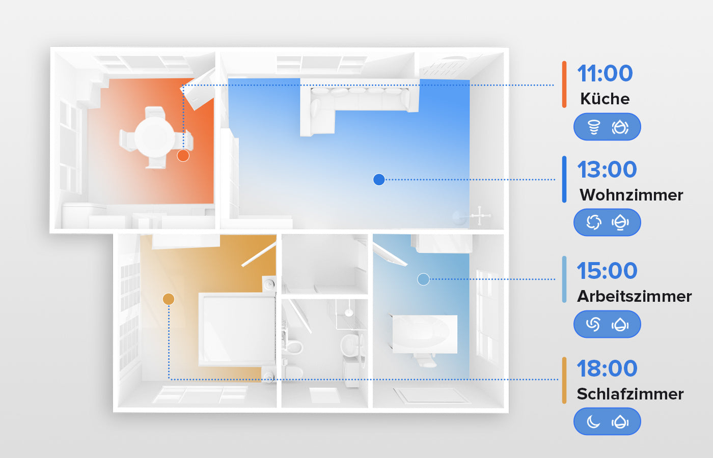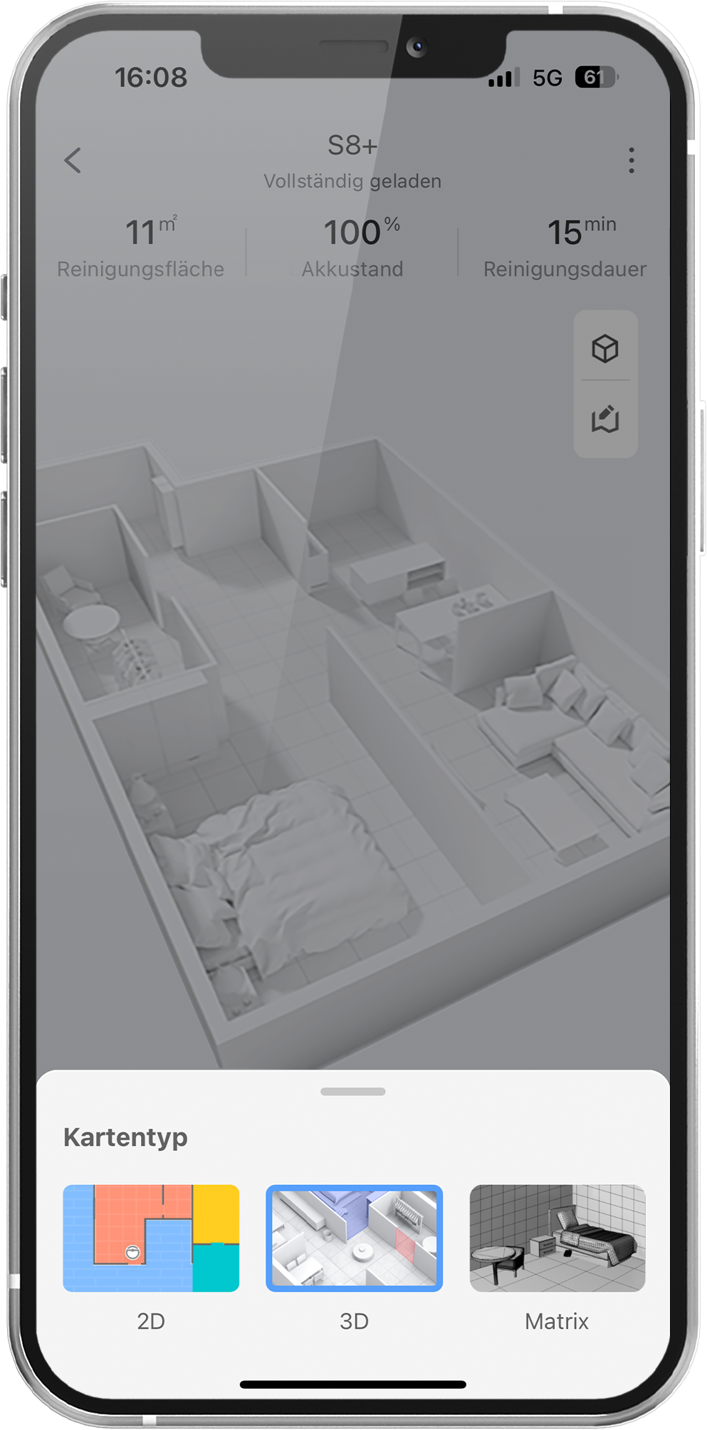 10. Im Vergleich zum Standardmodus für Reinigungsrouten. Die tatsächlichen Ergebnisse können je nach häuslicher Umgebung variieren.