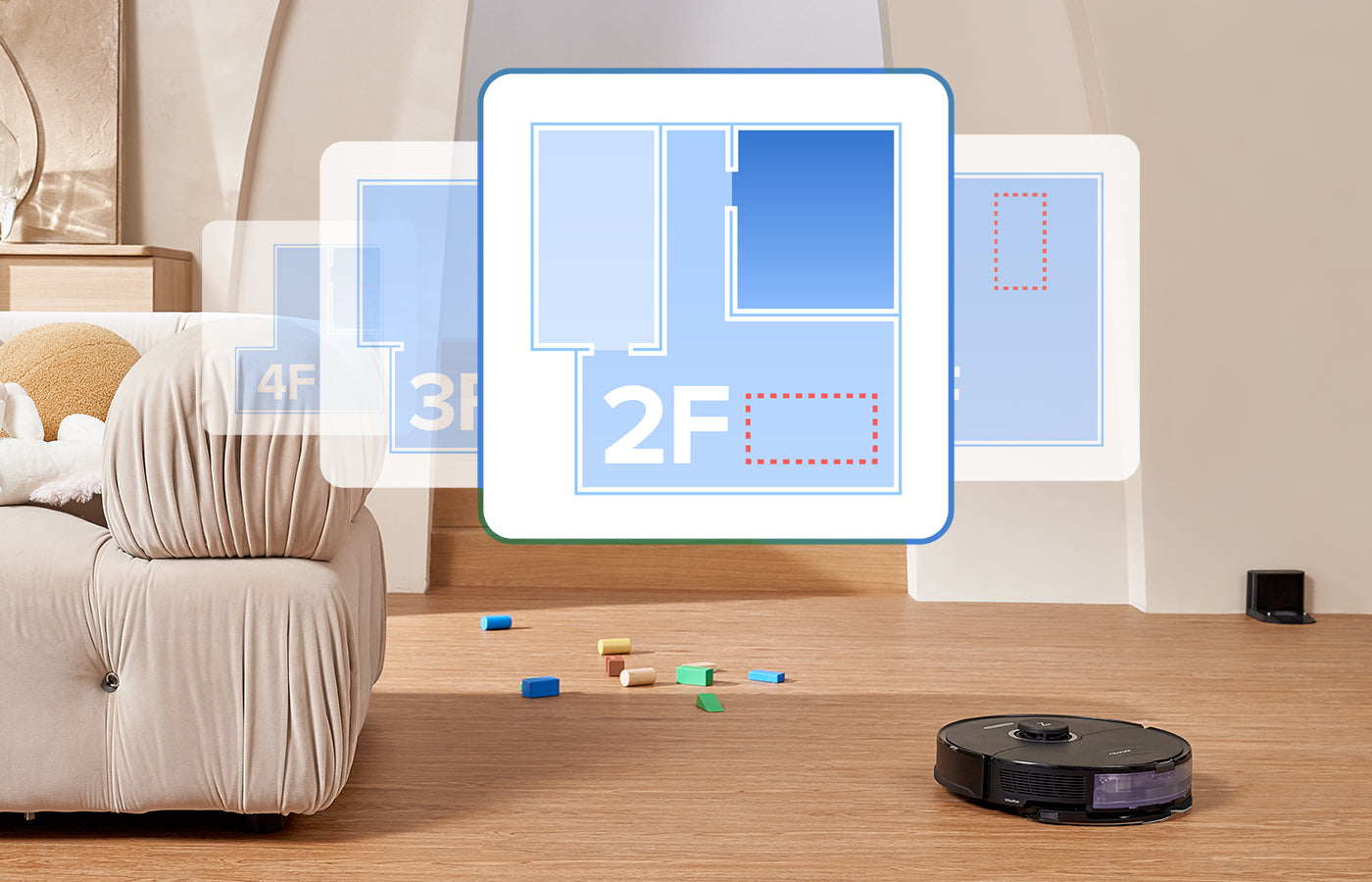 2. Im Vergleich zum Roborock S7. Basierend auf internen Tests, die vom Hersteller durchgeführt wurden. Die tatsächlichen Ergebnisse können je nach häuslicher Umgebung variieren.