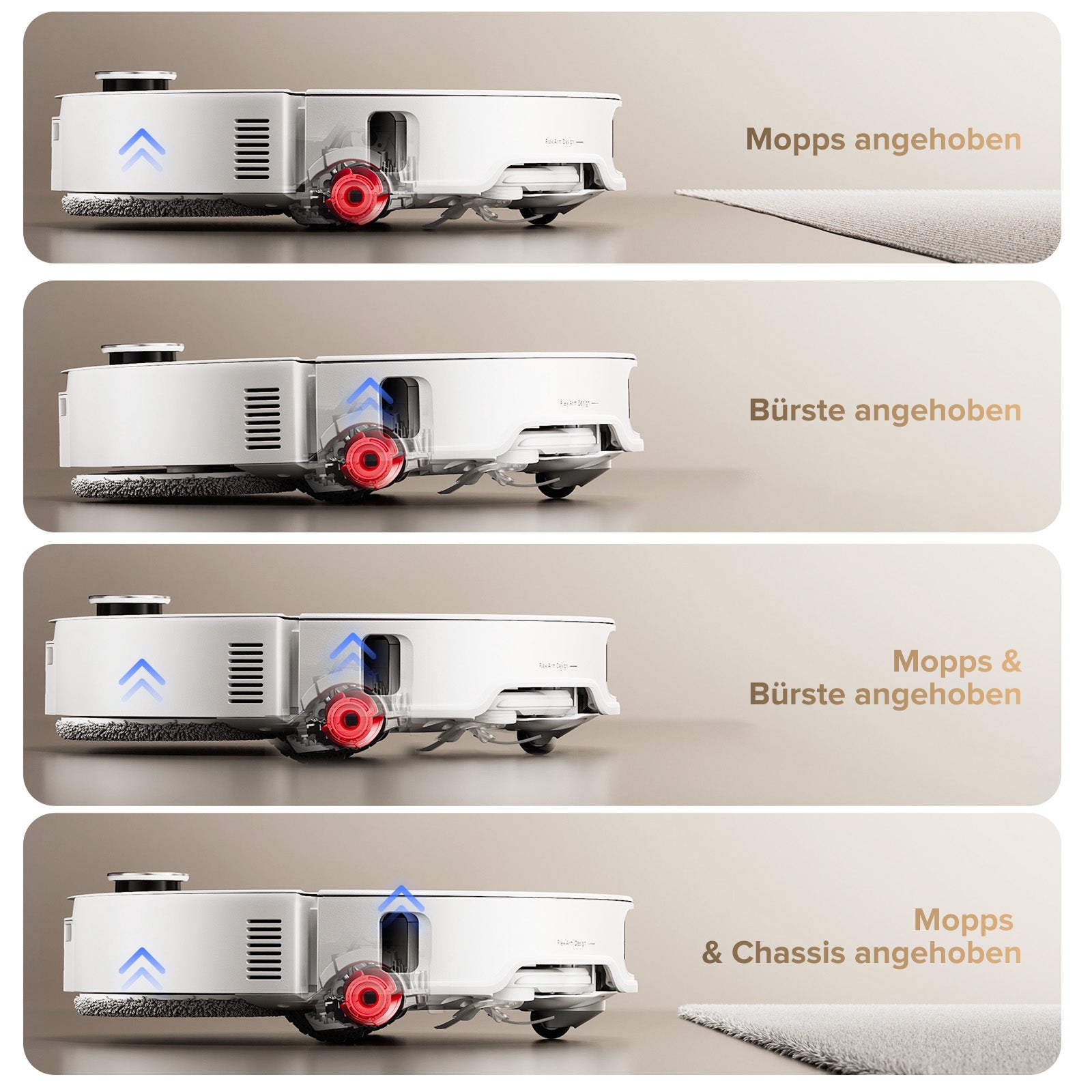 10. Basierend auf internen Roborock-Tests können die Moppmodule bis zu 17 mm vom Boden angehoben werden, wenn das Chassis angehoben ist.