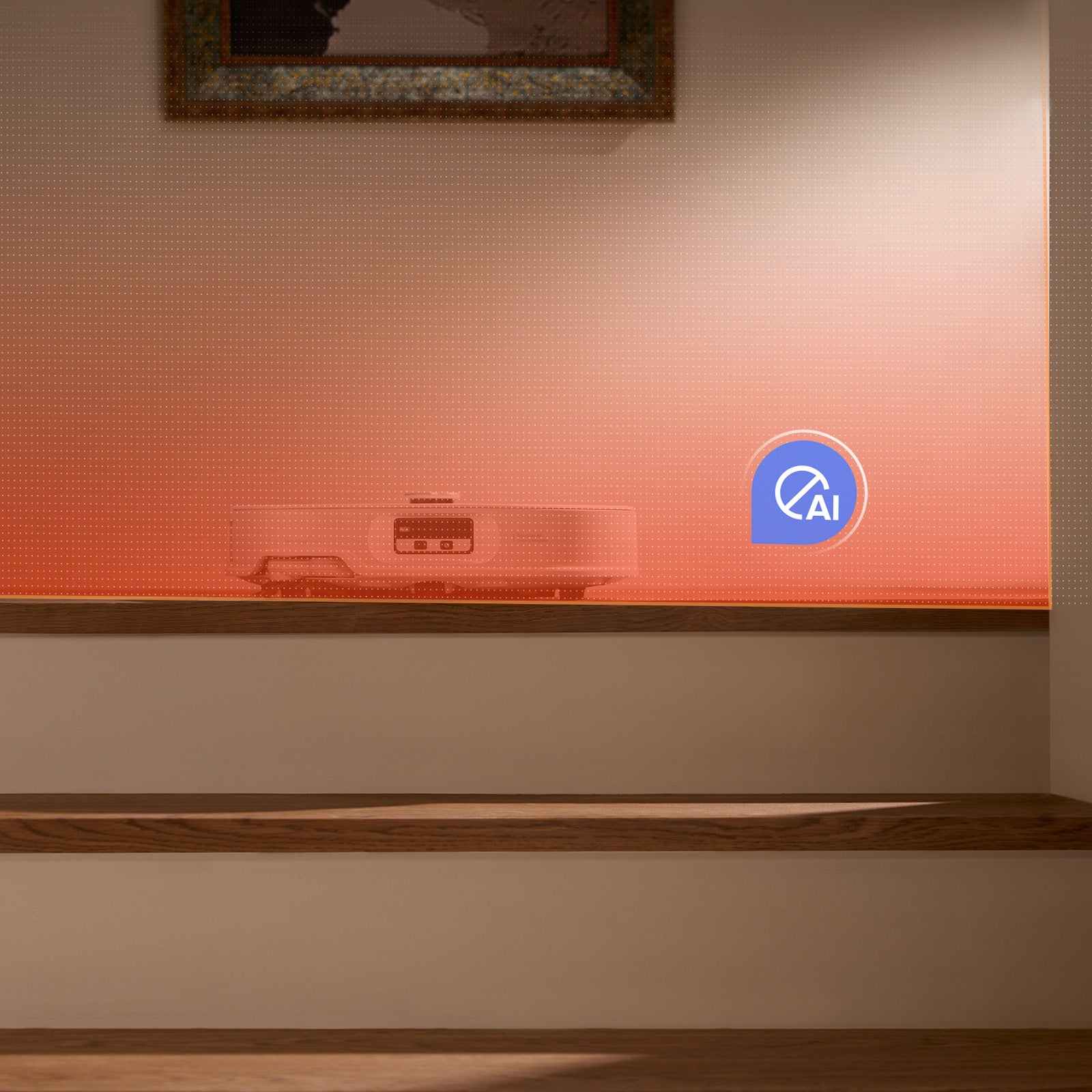 Mit strukturiertem Licht und einer RGB-Kamera kann der Roboter 108 Arten von Objekten12 auf intelligente Weise erkennen und ihnen ausweichen. Er umgeht Hindernisse sowohl in gut beleuchteten als auch in dunklen Räumen, ohne dass der Boden vorher aufgeräumt werden müsste.