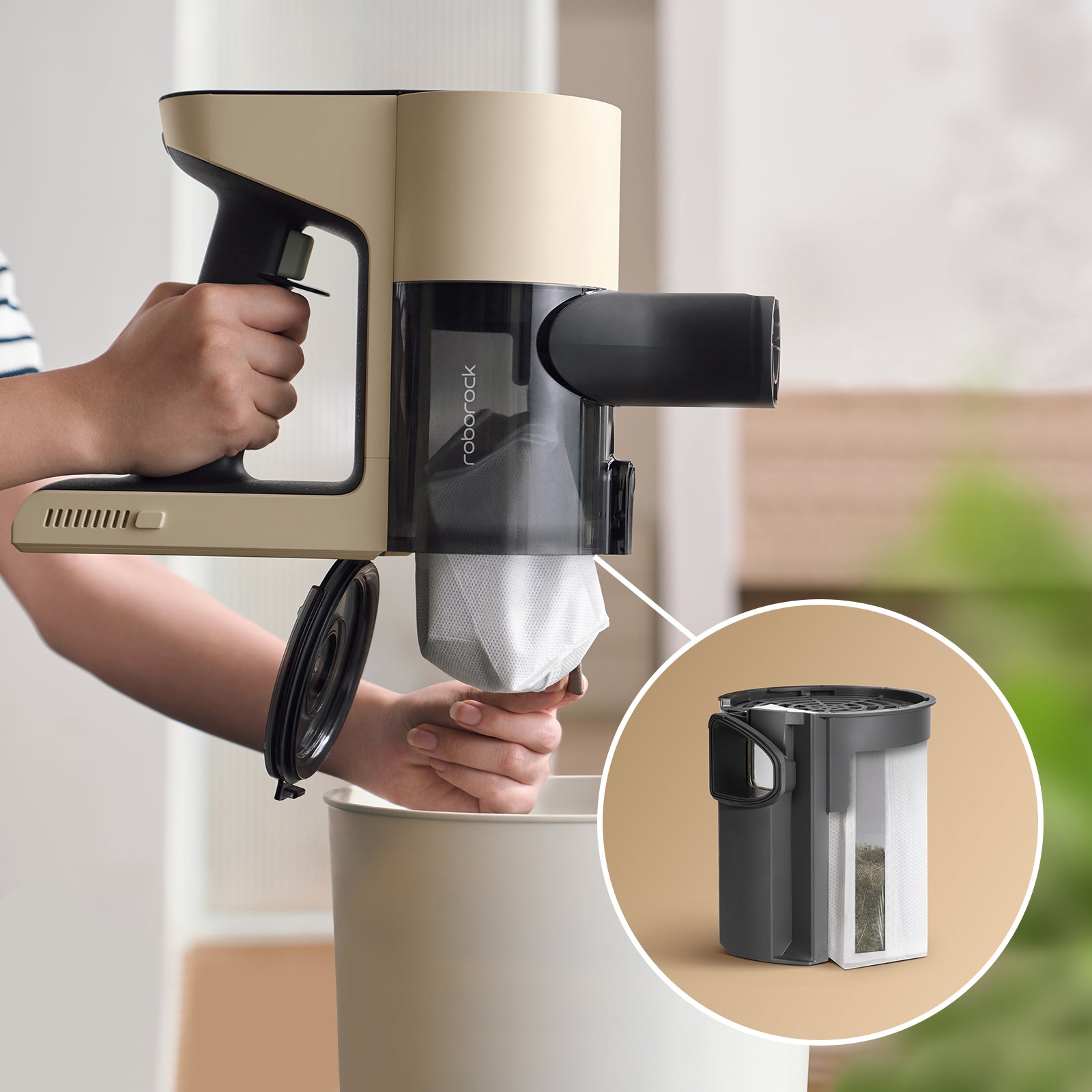 Leere den Staubsauger mit nur einen Klick. So bleibt alles sauber.
