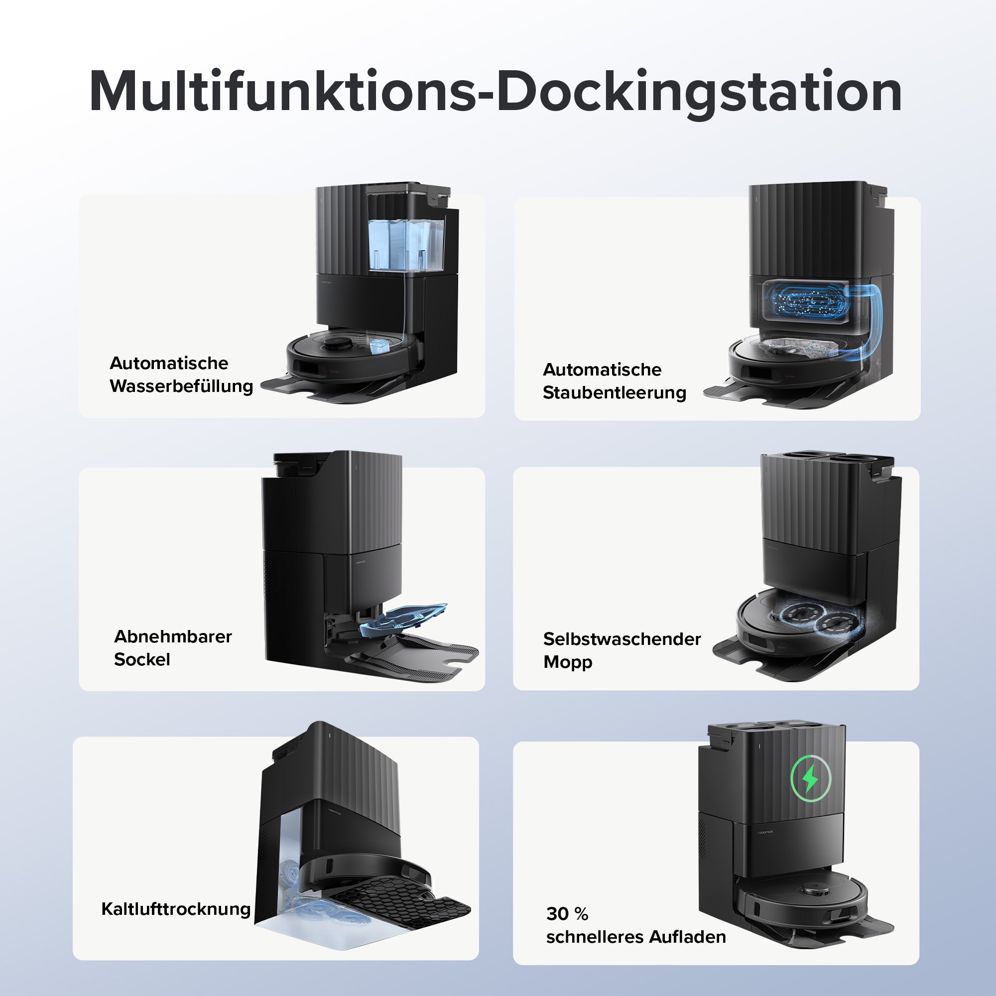 Revolutioniere die Reinigung deines Zuhauses mit der All-in-One-Dockingstation, die die gesamte Wartung für dich übernimmt.