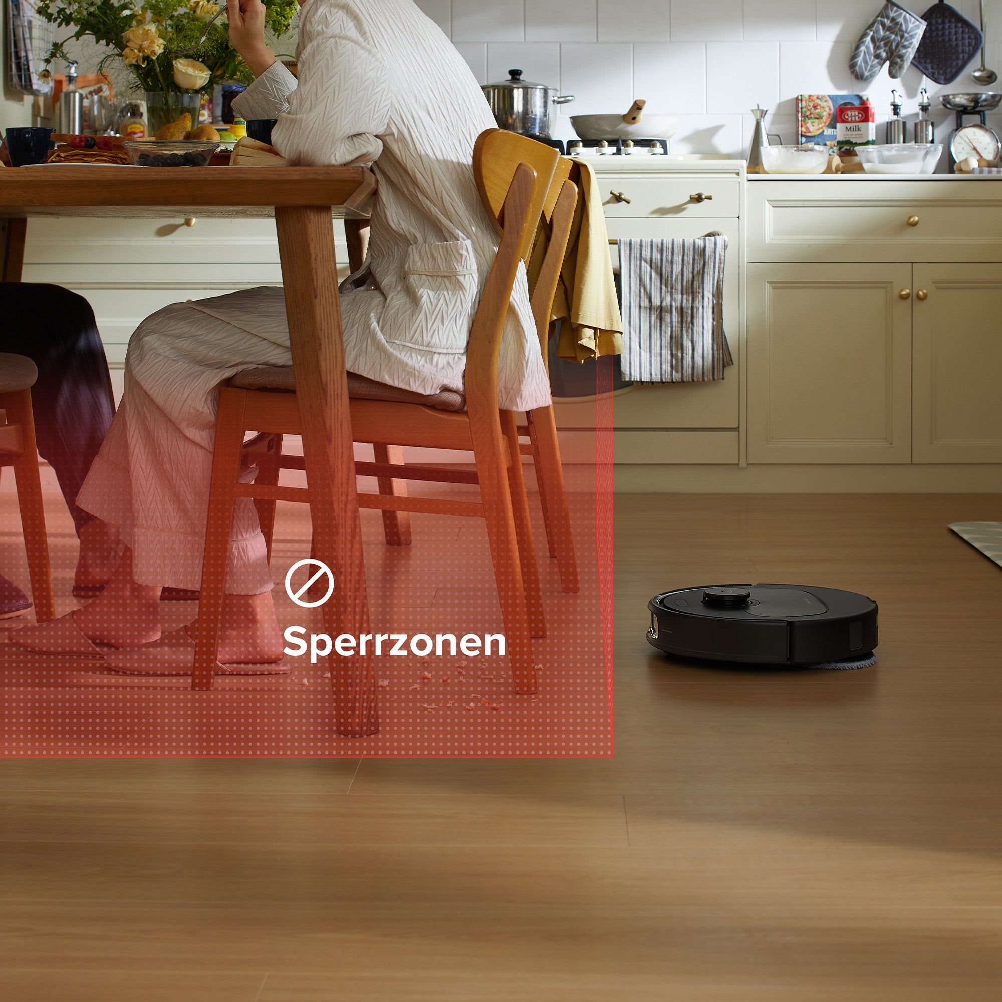 Du kannst nicht nur unsichtbare Wände und Sperrzonen individuell festlegen, der Saugroboter erkennt auch automatisch Stellen, an denen er sich festfahren könnte. Diese Stellen schlägt er dann als „Sperrzonen“ vor, um nicht festzuhängen.