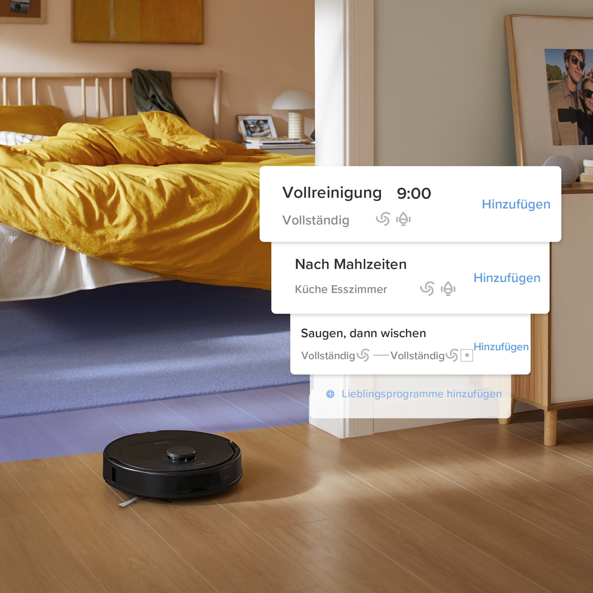 Durch Einstellen von Raum- und Bodentyp in der Roborock App wird der Saugroboter individuell an dein Zuhause angepasst und verwendet unterschiedliche Wasserdurchfluss-Stufen und Saugleistung für die perfekte Reinigung.