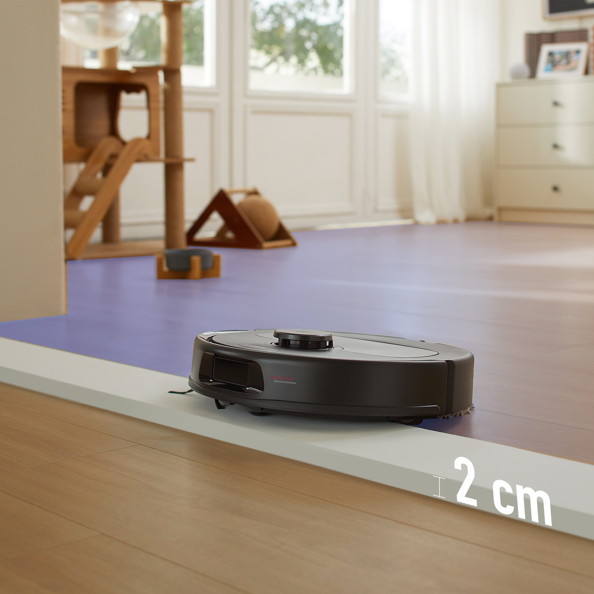 Der Roborock gleitet mühelos über Schwellen, Türstufen und Unebenheiten bis zu 2 cm für eine ununterbrochene Reinigungsleistung.